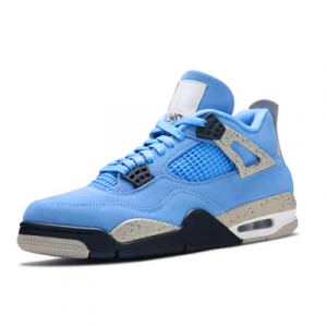 Nike Air Jordan 4 "University" є частиною культової лінійки Air Jordan. Основний колір моделі — "University Blue", натхненний квітами університету Північна Кароліна, де Майкл Джордан розпочав свою баскетбольну кар'єру. Верх кросівок виконаний з якісної шкіри із зернистою текстурою, що надає їй преміального вигляду. Для кращої вентиляції передбачені сітчасті вставки на бічних панелях та язичці. Технологія Nike Air у підошві гарантує амортизацію та комфорт при ходьбі. На бічних панелях моделі розташовані пластикові елементи, так звані крила, які додають дизайну унікальність і забезпечують додаткову підтримку стопи. Завершує образ п'ята з логотипом Jumpman та написом "Air".
